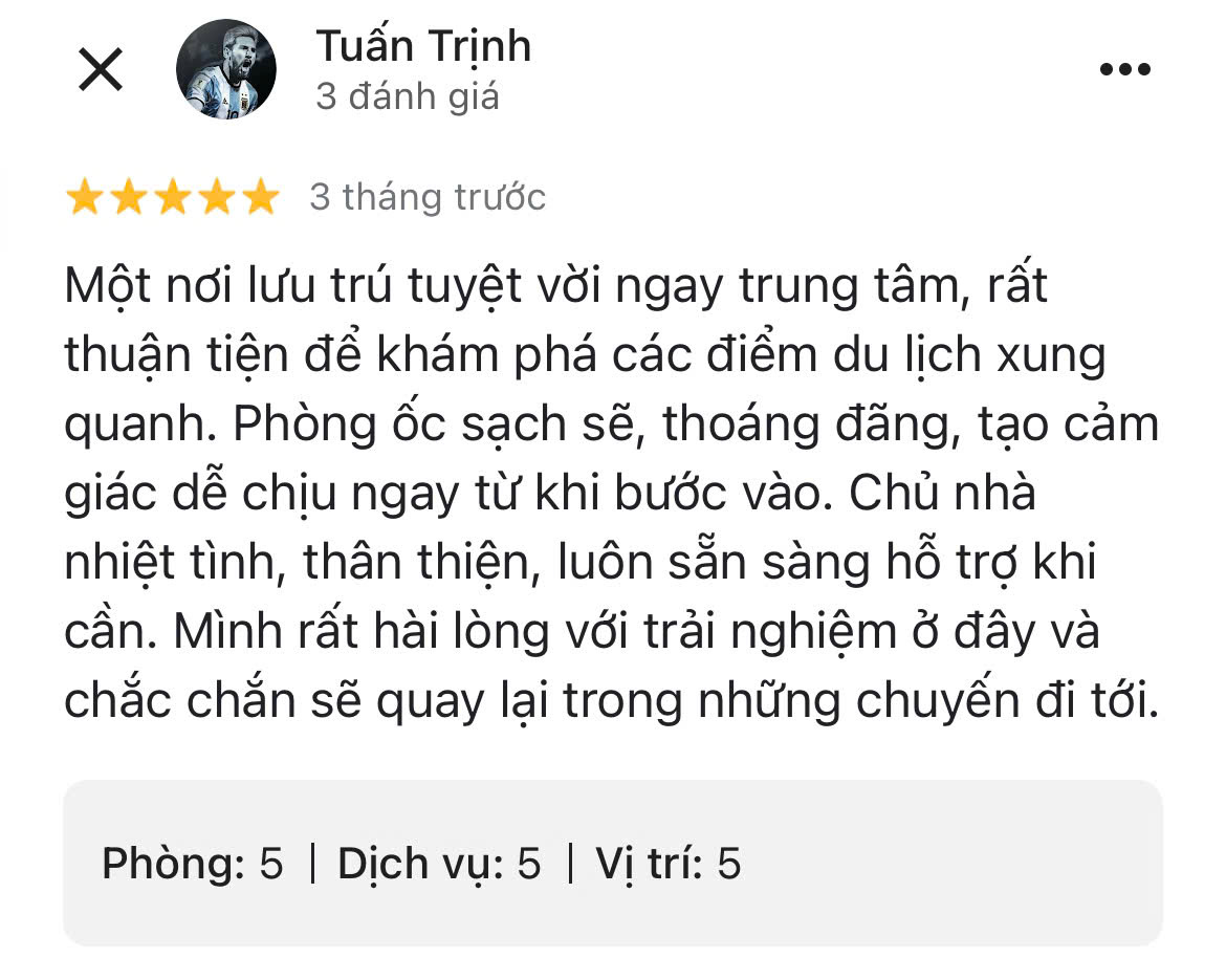 • Vì ở trung tâm nên có thể hơi ồn hơn so với homestay ở ngoại ô hoặc vùng rừng núi.