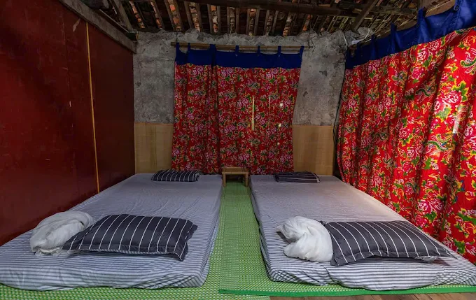- Kiểu phòng: ngủ tập thể trên sàn nhà gỗ truyền thống