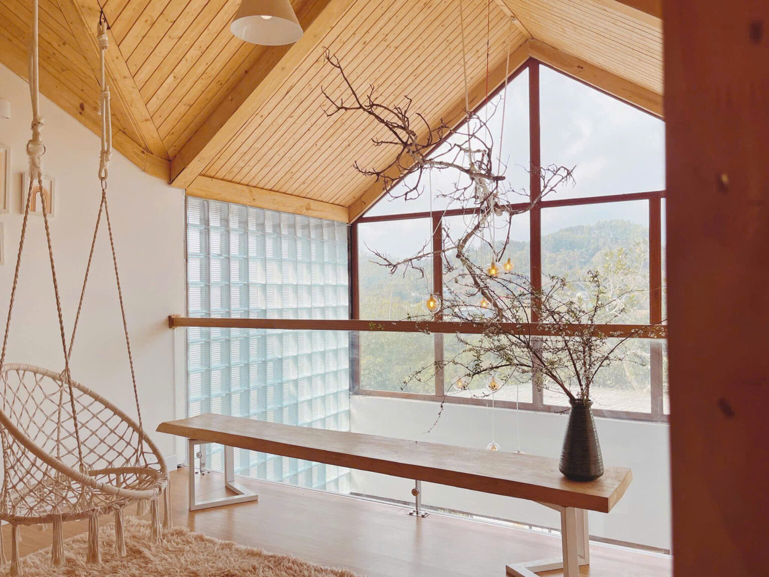 MiCasa Homestay Cao Bằng sở hữu nhiều căn gỗ gác mái được thiết kế theo phong cách Scandinavian: ấm áp, tối giản, đầy ánh sáng. Từng căn đều có cửa sổ lớn nhìn thẳng ra rừng cây hoặc thảm cỏ, tạo cảm giác như đang ở giữa một căn cabin Bắc Âu thực thụ.