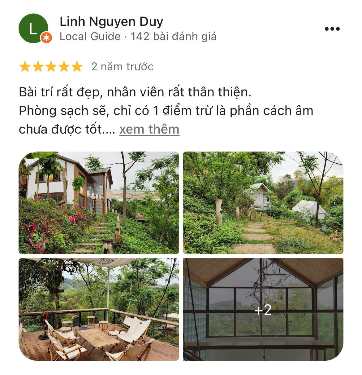 - Dịch vụ: Phòng gỗ, camping, BBQ, bữa sáng, thuê xe máy